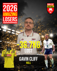 I couldn’t get around the pitch at 24-and-a-half stone, and I was a bit of a lump to be running around, so my aim every week was to basically get as many goals on the weight loss side, and then I’ve since become a better player on the pitch. The concept is brilliant, it’s worked wonders for me and you don’t want to let the lads down.